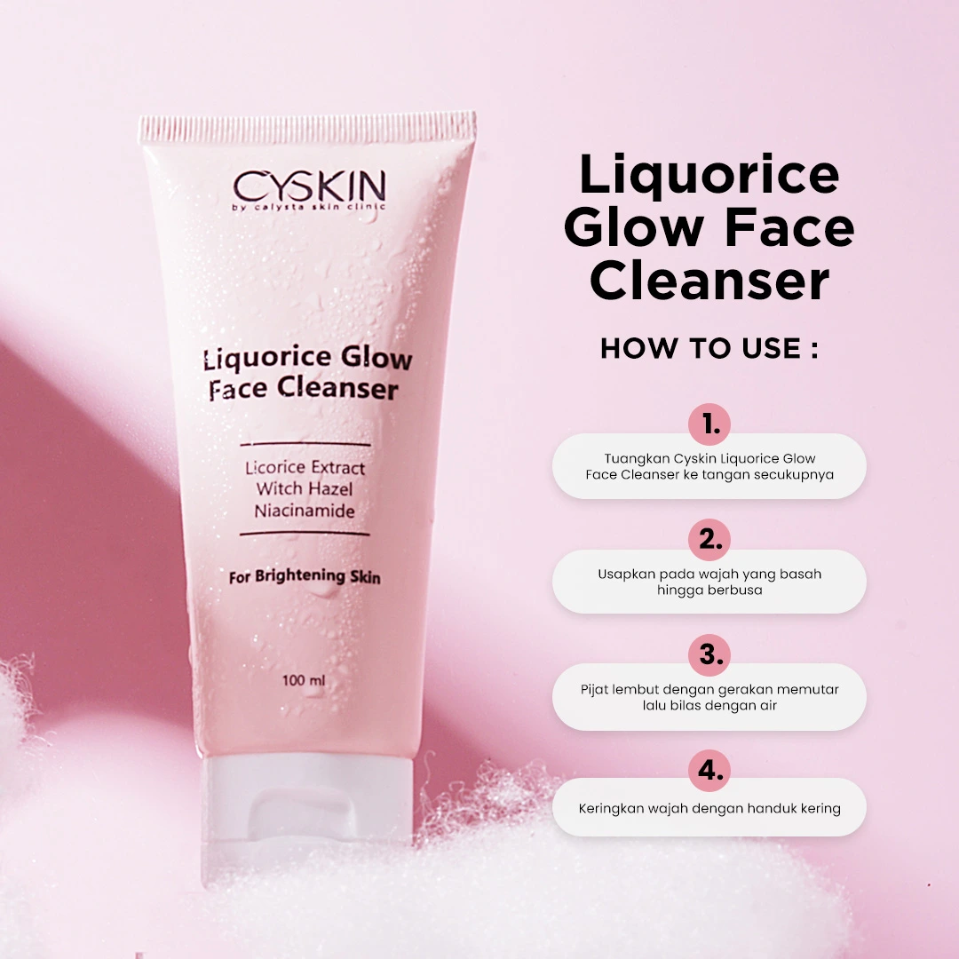Face Cleanser yang diformulasikan dengan kombinasi zat aktif Licorice, Witch Hazel dan Niacinamide, berfungsi untuk membersihkan melembabkan dan mencerahkan wajah.